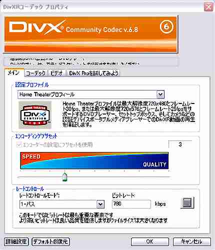 最終的にDivxに圧縮した際には、「MPEGの圧縮品質設定」は「普通」(2343kbps)でもあまり変わりありませんでした。