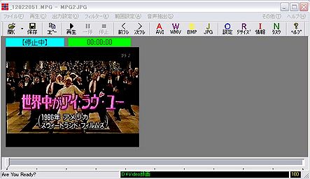 「MPG2JPG」で、MPEGファイルを開いたところ